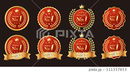 ランキングフレーム・メダル・ワッペン/ベクターイラスト素材/赤と金のグラデーション