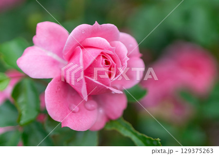 可愛らしいピンクのバラと水滴