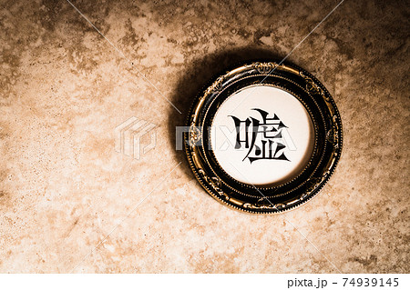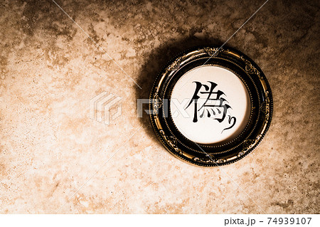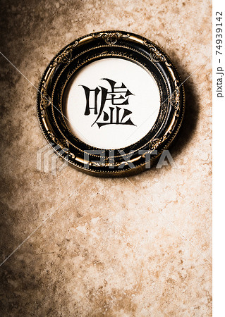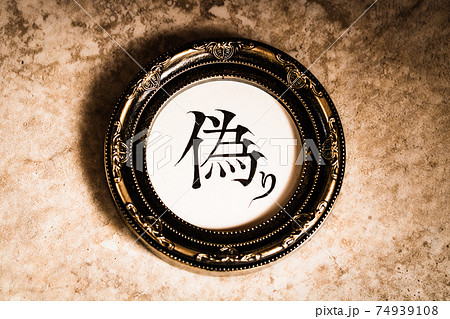 クラシカルなフレームに入った手書き文字『嘘』『偽り』