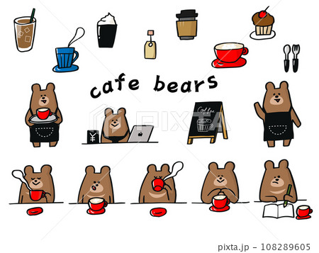 くまのカフェオーナーとお客さんとカフェドリンクのセット