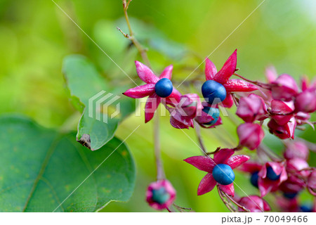 緑色に輝く千葉県鴨川市大山千枚田付近のクサギの実