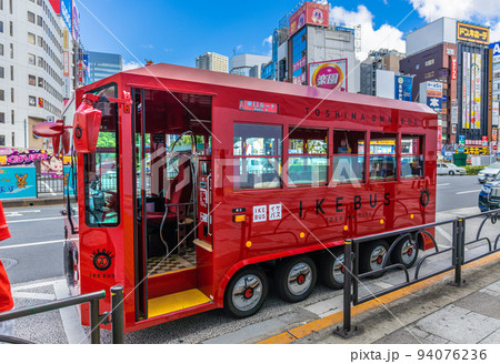 日本の東京都市景観 池袋駅東口。イケバスなどを望む=19日