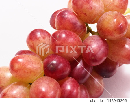ぶどう棚に実った熟し始めのぶどう クイーンルージュ