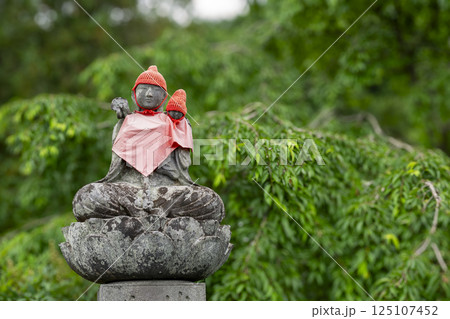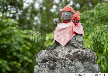 秩父長瀞町の法善寺にある赤い帽子と前垂れをした親子地蔵