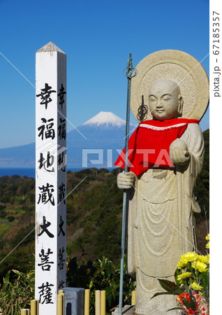 西伊豆・恋人岬の幸福地蔵と富士山(静岡県伊豆市)