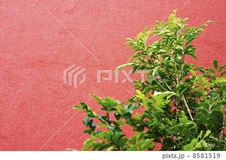 赤い壁と緑の植物