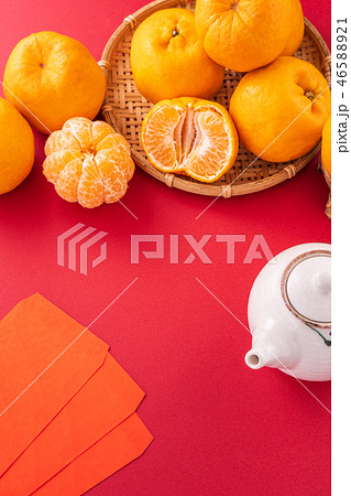 橘子 水果 紅色 背景 農曆新年 過年 紅包 新年 new year concept