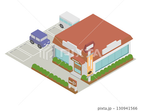 アイソメトリックなファミリーレストランをイメージした建物素材