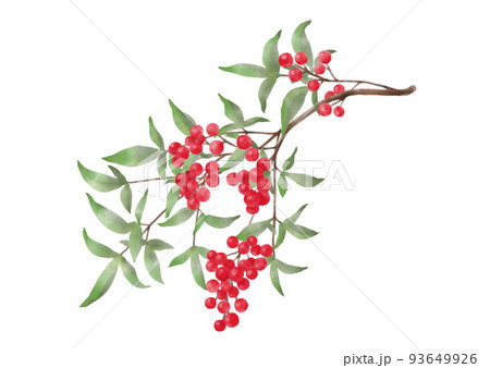 南天のリアルな水彩イラスト