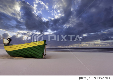 Sunset over Baltic Sea in Lubiatowo, Pomerania, Poland