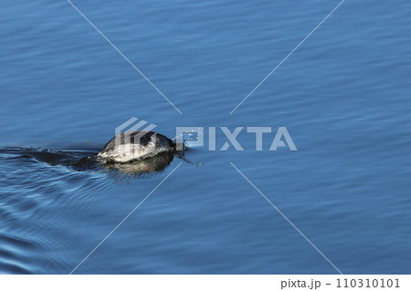 赤い瞳で水面を泳ぐ、冬羽のハジロカイツブリ