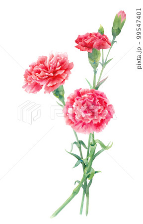 赤いカーネーションの水彩イラスト。母の日の装飾。