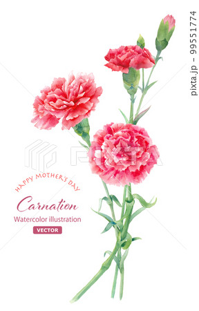 赤いカーネーションの水彩イラスト。母の日の装飾。(ベクター。レイアウト変更可能)