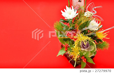 お正月飾り、正月用お花のアレンジメントのイメージ。