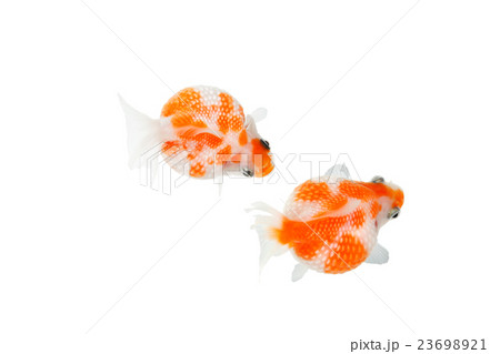 Oranda goldfish isolated on white background close up
