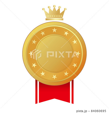 メダル_王冠が付いた星飾りの金メダルと赤いリボン