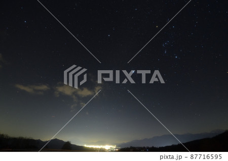 北杜市白州町、冬の大三角とオリオン座(ホタル公園より)