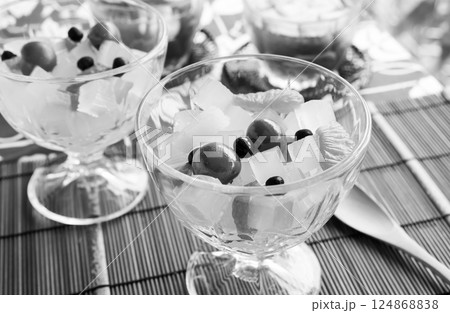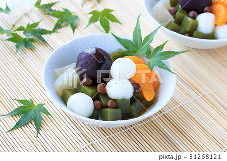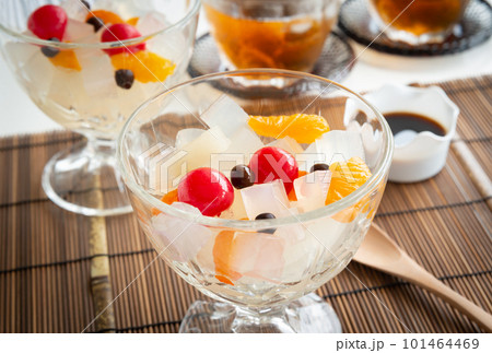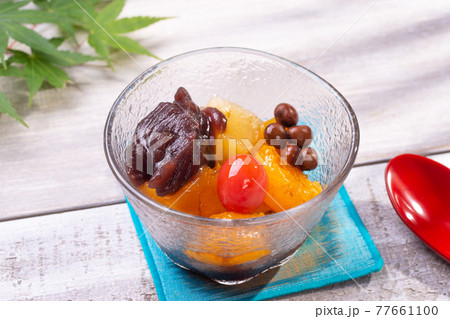 ガラスの器に盛ったみつ豆 和菓子 蜜豆 甘味