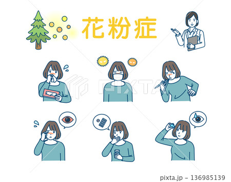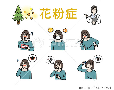花粉症アレルギー症状 鼻水 くしゃみ 鼻づまり イラストセット