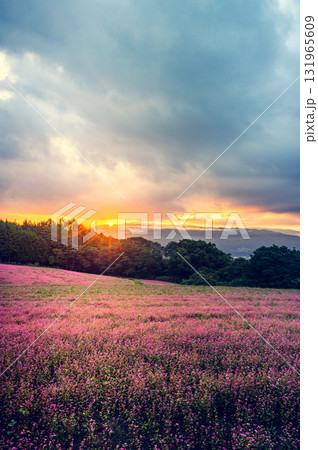 日の出と赤そばの花【赤そばの里】