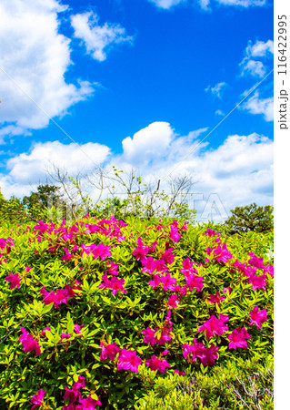 北海道の春の景色 桜と同時に絨毯のように、たくさんの花をつけるピンクのツツジ