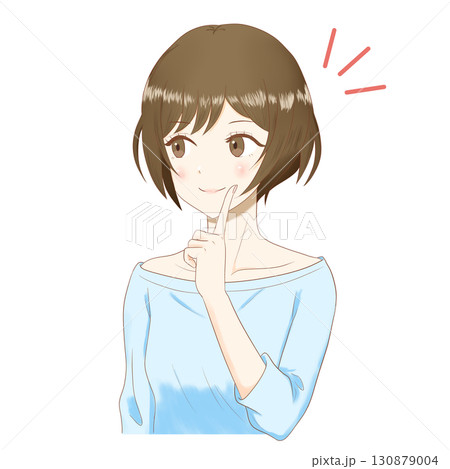 ひらめいたポーズの若い女性キャラクター(透明背景)