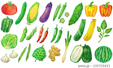 夏野菜のイラストセット オイルパステル画