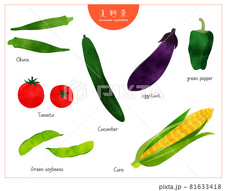 シンプルな夏野菜セット02/手描き水彩/園芸