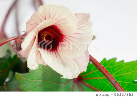 クローズアップ撮影した赤オクラの花