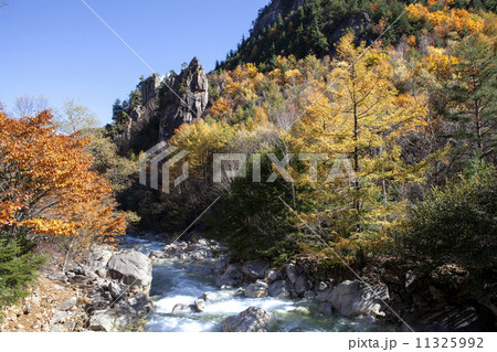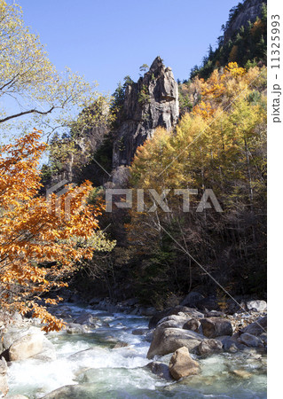 日光鬼怒川 龍王峡の紅葉 竪琴の滝