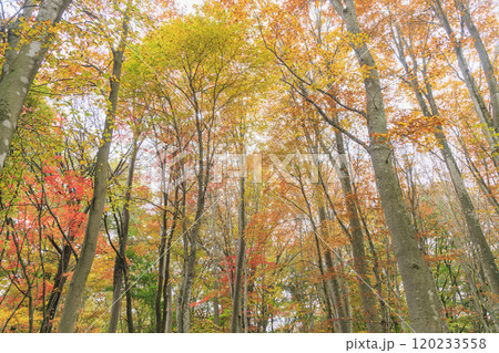 岩手県八幡平松川から望む地熱発電と樹海の黄葉