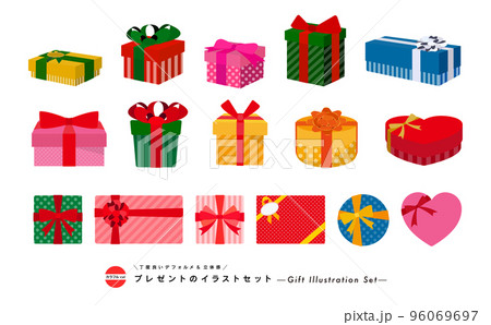 クリスマスカラーのプレゼントボックスのベクターイラストセット