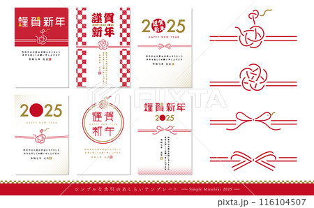 2025年巳年のお正月水引きの和モダンな年賀状テンプレート