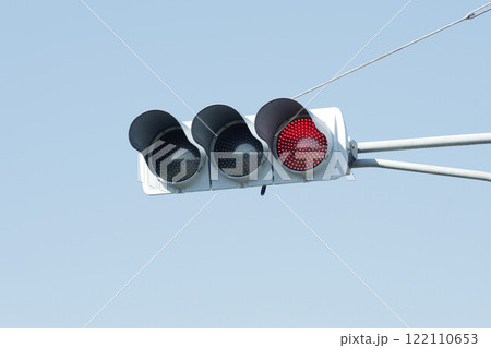 交通イメージ ゼブラ板がついている信号機 赤点灯