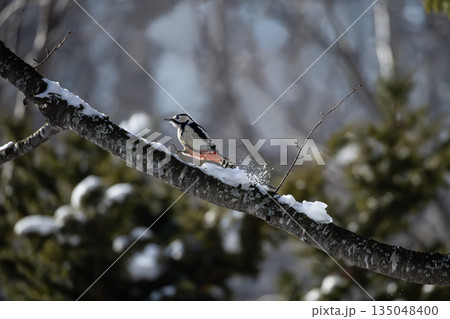 オオアカゲラ、大赤啄木鳥、エゾオオアカゲオオアカゲラ、大赤啄木鳥、エゾオオアラ アカゲラ 北海道野鳥