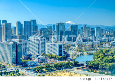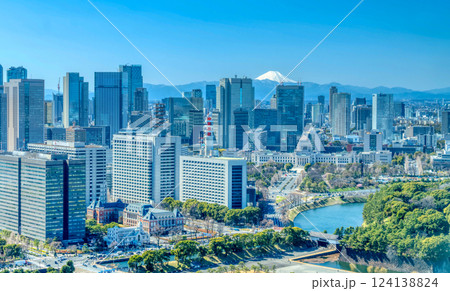 東京風景 2019 春 新緑 青空 六本木から望む皇居 大手町 方面