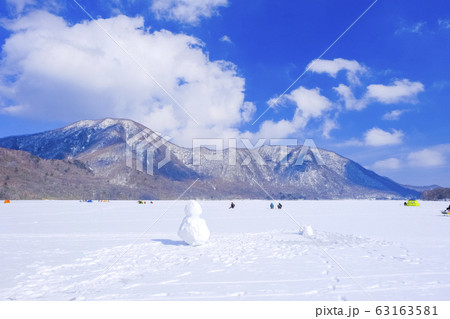 結氷した大沼の氷上 群馬県赤城山