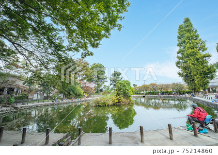公園の風景 都立赤塚公園で釣りを楽しむ人々 東京都板橋区