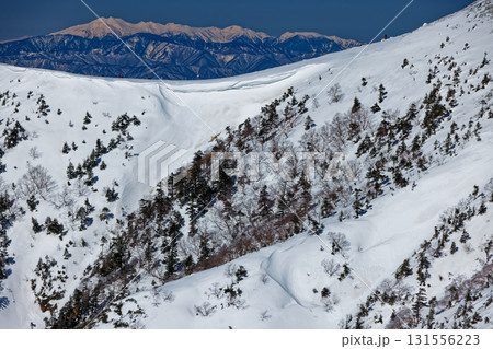 硫黄岳山頂から 残雪の八ヶ岳連峰(横岳) 北杜市、山梨県、日本