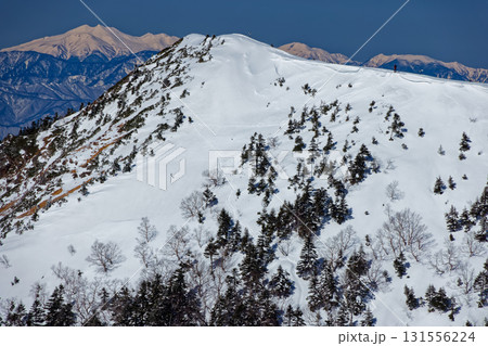 八ヶ岳連峰・硫黄岳山荘付近から見る冬の赤岩ノ頭と乗鞍岳