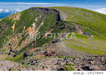 夏の八ヶ岳連峰・硫黄岳稜線を行く登山者