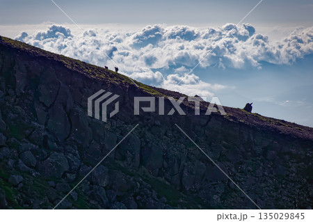八ヶ岳連峰・硫黄岳稜線を行く登山者と雲海