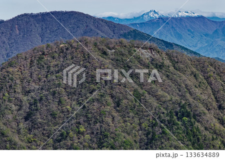 丹沢・塔ノ岳から見る大室山と残雪の八ヶ岳