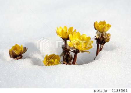 雪と福寿草の花