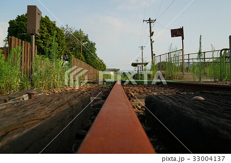 2016年4月の熊本地震から1年3か月後 不通になったままで放置された赤水駅 線路の夕景