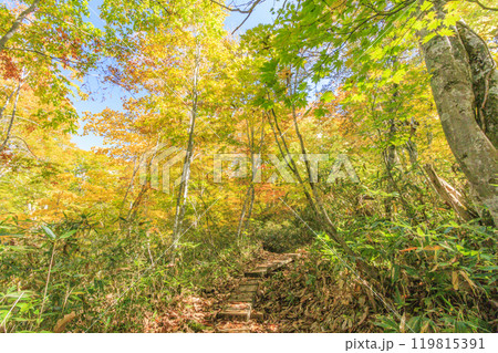 秋の尾瀬 草紅葉と森の紅葉 燧裏林道
