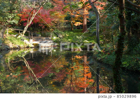 神奈川県鎌倉市雪ノ下 鶴岡八幡宮境内の柳原神池に映る紅葉モミジ