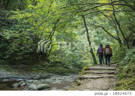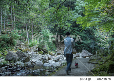 三重県名張 赤目四十八滝で犬の散歩をする人