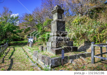 開けた小高い丘の上に建つ宝篋印塔(ほうきょういんとう)