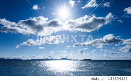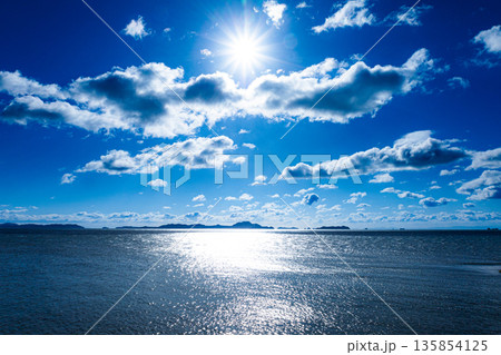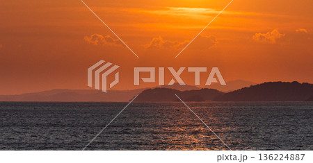 早朝の兵庫県赤穂市赤穂御崎から見た家島諸島と太陽